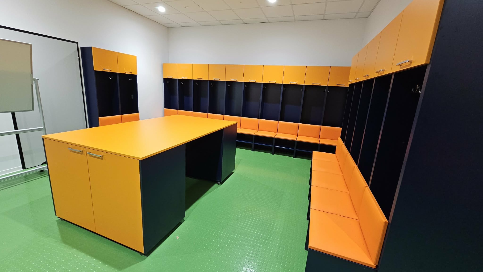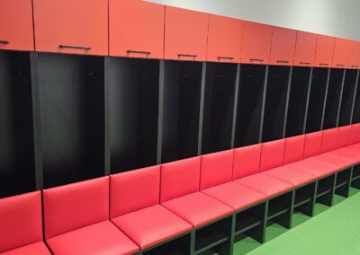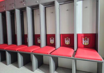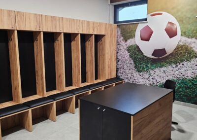 Každý modul je samostatný segment montovaný na mieste. Modul je možné rozobrať a usporiadanie v budúcnosti upraviť podľa vašich potrieb. Celá jednotka je vyrobená z dosky rovnakej hrúbky. Priečky modulov majú hrúbku 36 mm (nie 18 mm ako u iných výrobcov). Všetky naše moduly sú vyrábané na mieru, na základe poskytnutých pôdorysov. Po prijatí ponuky vytvoríme pre našich klientov profesionálnu vizualizáciu. Spoločne s klientom určíme všetky parametre modulov a ich povrchovú úpravu – od funkcie nábytku, cez farebné prevedenie, doplnky, typ sedadla až po vyšívané klubové logá a grafiku.