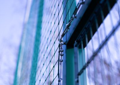 – Sieť je uchytená k stĺpom pomocou karabín, ktoré sa zacvaknú k oceľovému lanku, vedenom po celom obvode systému